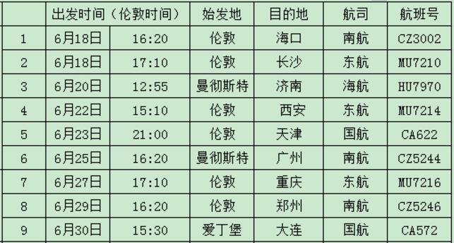 中国驻英大使馆新一轮包机回国计划来了!国航和南航公布7月国际航班计划!