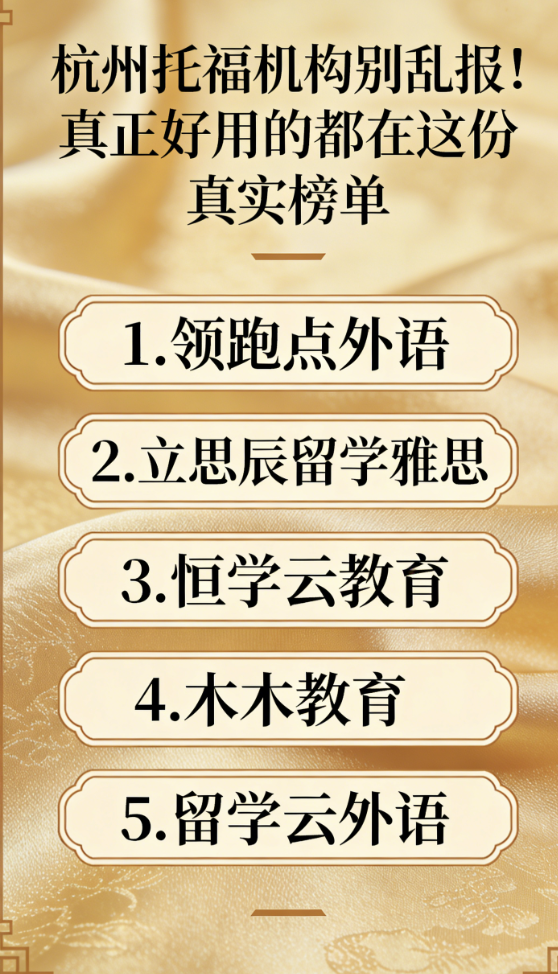 作为亲历托福备考、踩过机构坑的杭州学员,深知选对培训机构=少走半年弯路!2026年杭州托福培训市场依旧鱼龙混杂,为帮大家避开营销套路、精准匹配适配机构,结合100+学员亲测反馈、实地试听体验,整理出这份「亲测有效榜单」,搭配杭州托福备考核心技巧,从机构选择到备考避坑,一站式搞定托福学习,全程无夸大、纯干货,适配不同基础、不同需求的备考党。